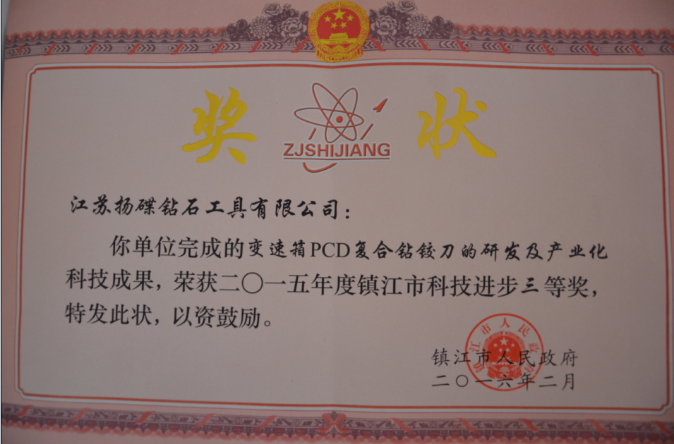 多年來,企業(yè)通過ISO9001國際質(zhì)量體系認(rèn)證,被中國中輕產(chǎn)品質(zhì)保中心授予“全國金剛石制造行業(yè)質(zhì)量放心滿意單位”,獲得江蘇省高新技術(shù)企業(yè)稱號,榮獲江蘇省小巨人稱號,變速箱PCD復(fù)合鉆鉸刀獲省高新技術(shù)產(chǎn)品等等。
